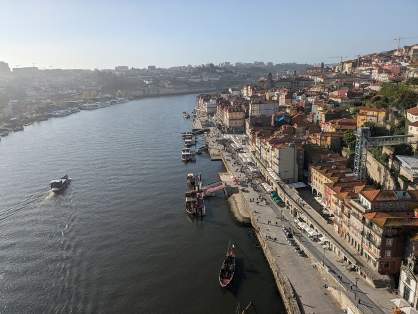 Portugal road trip starting in Porto—a visit to Livraria Lello (the Harry Potter bookstore), Clérigos Tower, and stunning views from Dom Luís I Bridge.