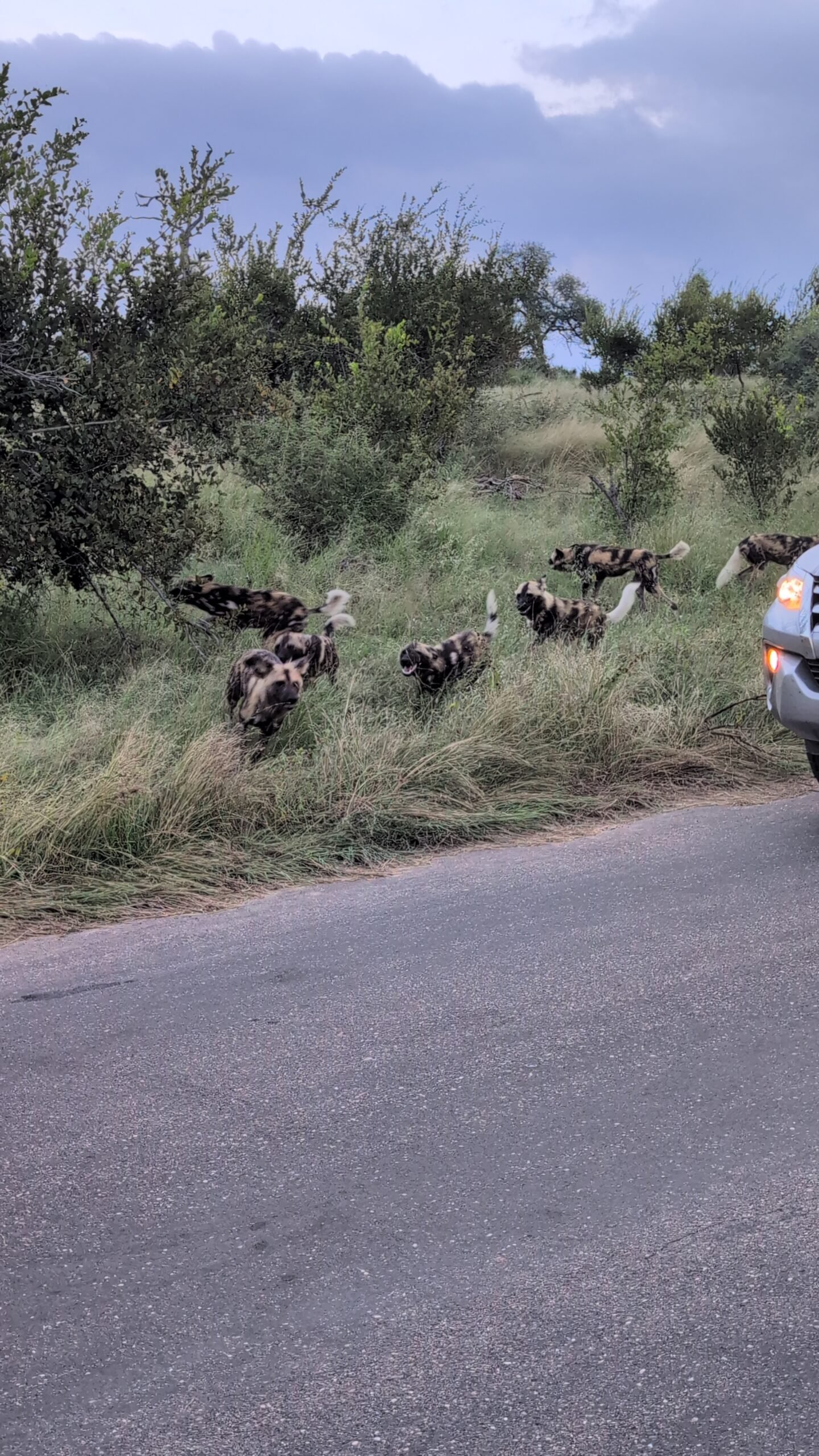 My heart nearly burst out of my chest.African Wild Dogs. Painted Wolves. Lycaon pictus. One of the most endangered and most sought-after animals in all of Africa. Kruger is one of their last strongholds, and even here, sightings are rare, unpredictable, and spoken about in hushed, reverent tones.