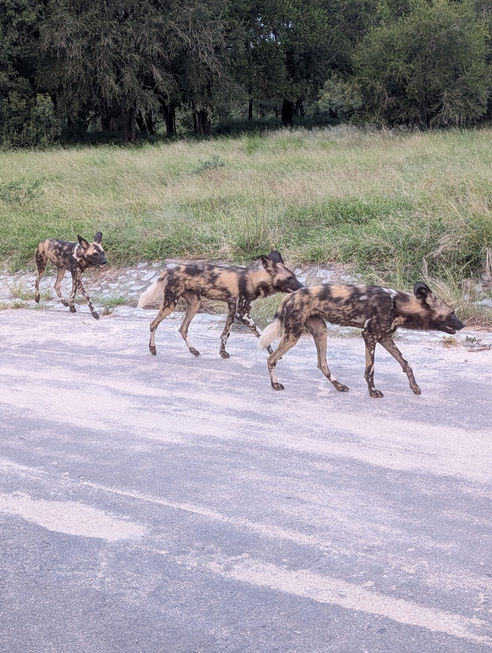 And then — as if responding to some silent signal that only the pack could hear — they formed up. The playing stopped. The energy shifted from playful to purposeful. And they began to march.Twenty-plus painted wolves, moving in formation down the road with the disciplined, synchronised intent of a hunting party heading to war. It was mesmerising. The most beautiful, most thrilling animal behaviour I have ever witnessed.