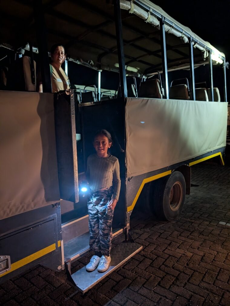 When she woke, she was transformed. Brighter. Bouncier. More herself than she’d been in days. The dark circles under her eyes had softened. The lethargy had lifted. She bounced out of bed, looked at us with those big, sparkling eyes, and said the words we’d been waiting to hear: “Can we go see animals now?”We laughed. Of course we could. But we tempered expectations — it was already mid-morning, the sun was climbing, and the bush would be winding down. Don’t expect much, sweetheart. The animals rest when it’s hot.