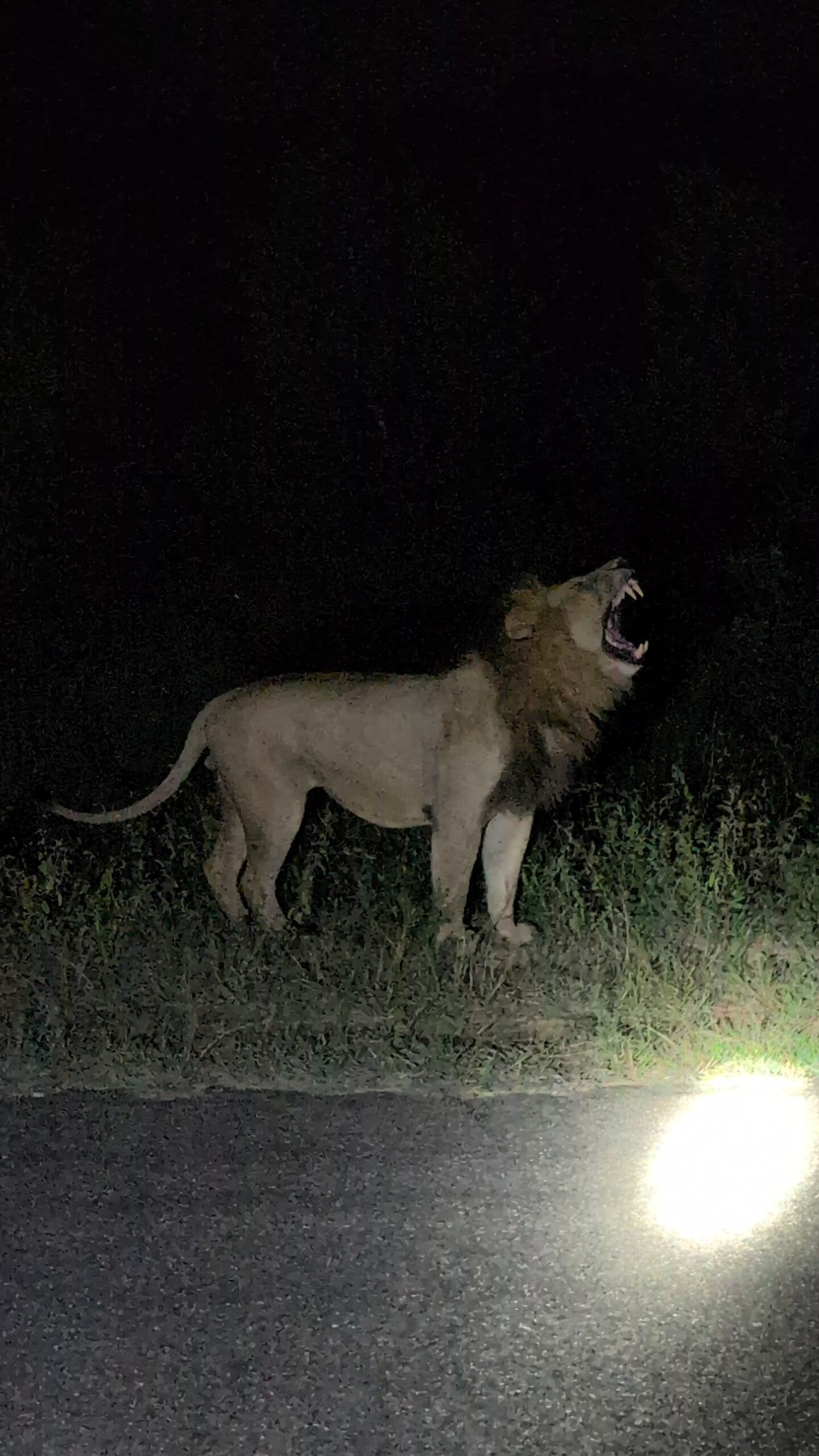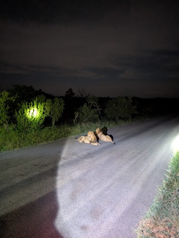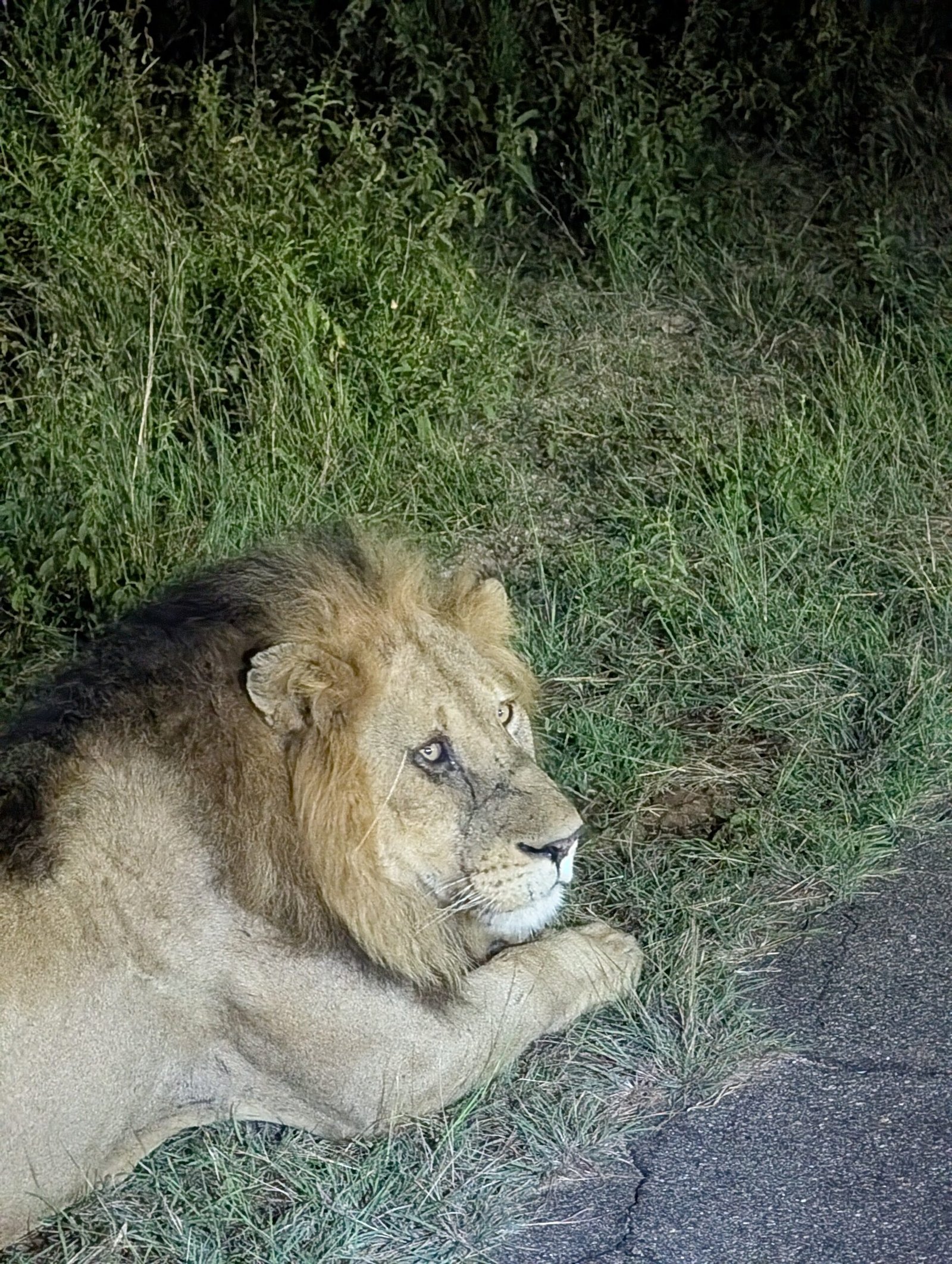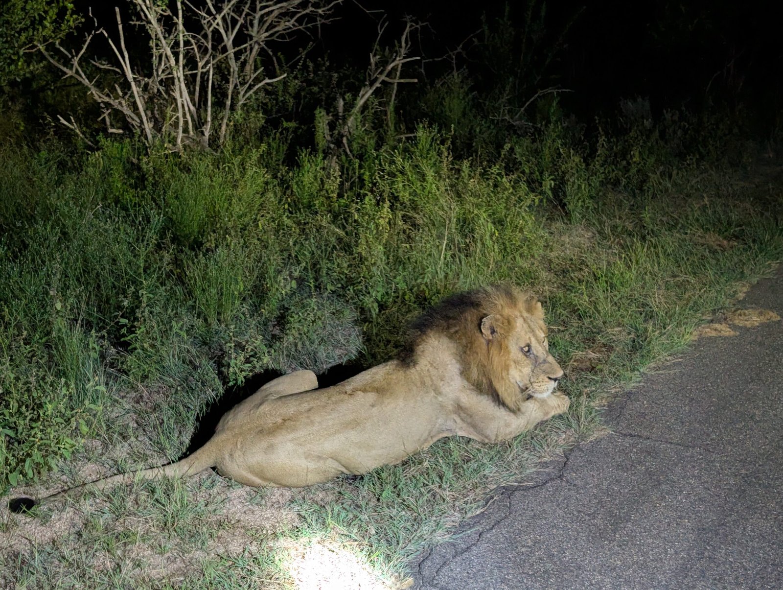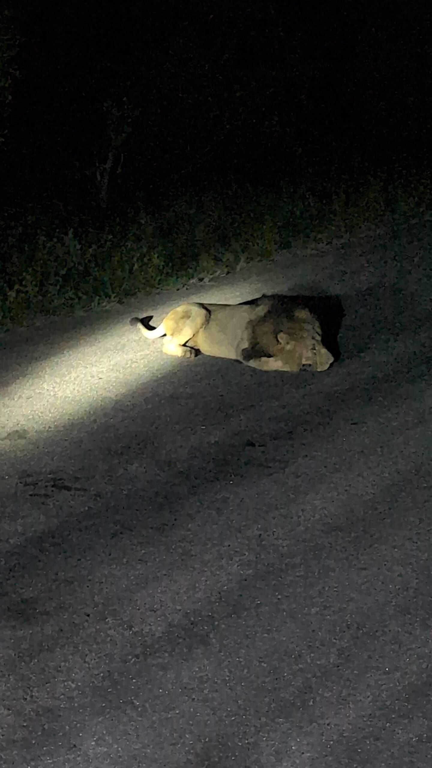 The other three didn’t even bother moving. They lay there, kings of the road, masters of the night, utterly unbothered by the vehicle full of gasping humans ten metres away.We sat with them for a long time. Taking it all in. The size. The power. The sheer, overwhelming presence of a lion at close range in the African night.