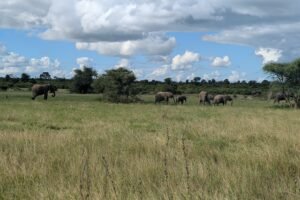 Elephants appeared first, grey ghosts drifting through the mist, feeding quietly on the roadside. We slowed to a crawl, windows down, listening to the soft crunch of branches and the deep, rumbling contentment of a herd at breakfast.
