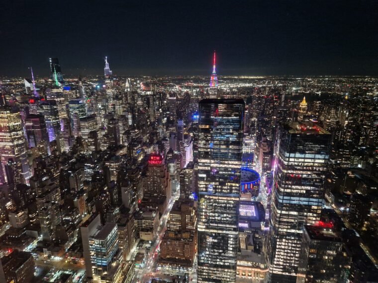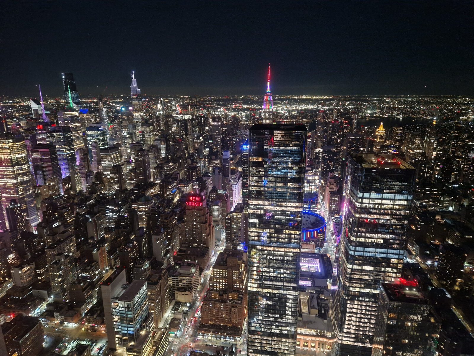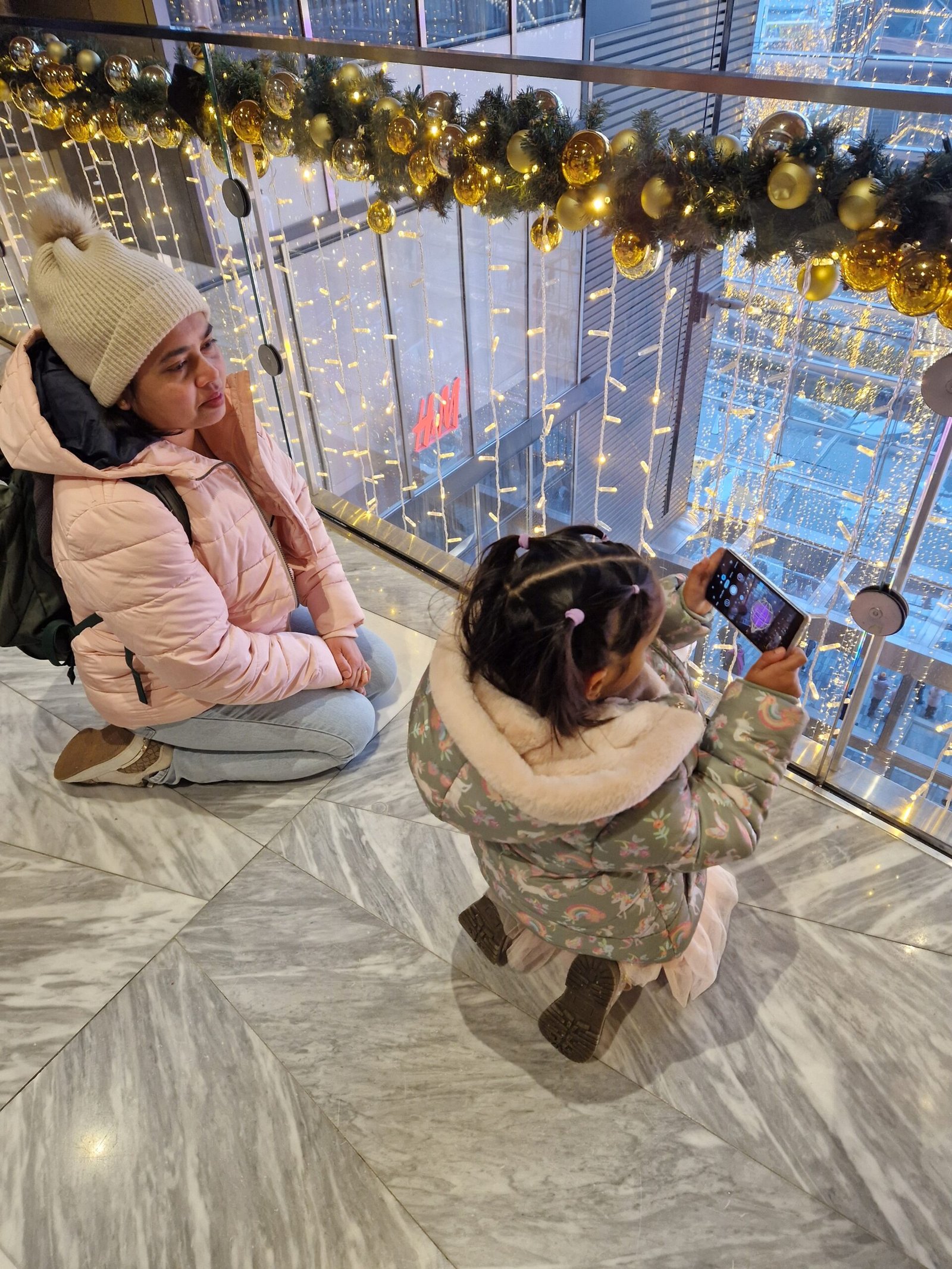But we weren’t done yet! One chilly December evening, we braved the cold and headed to the Top of the Rock viewing platform. The night view of the city was breathtaking, with skyscrapers stretching out as far as the eye could see.