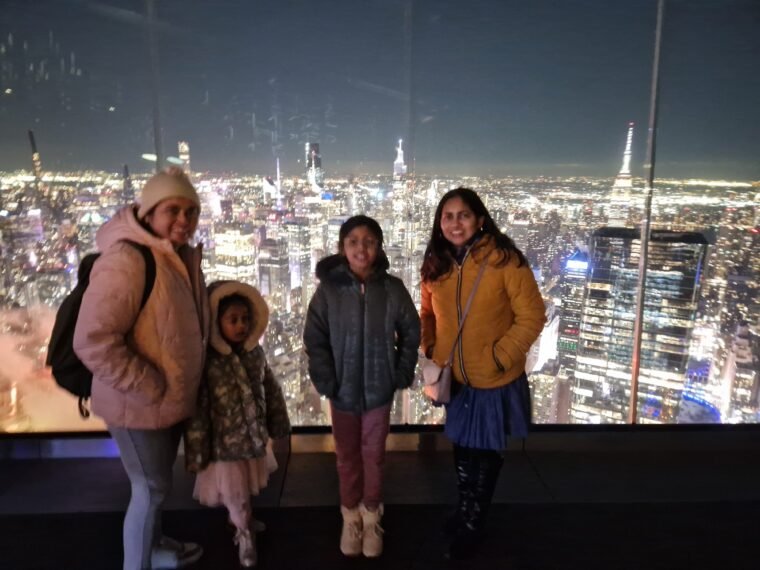 As we stepped off the plane, Audrey’s eyes sparkled with excitement. This was her first trip to the USA, and she couldn’t wait to meet her cousins Kevin and Grace, and explore the city that never sleeps. We had planned a special family reunion in New Jersey, where Asha, Amoli’s sister, lived with her husband Praveen and their kids.